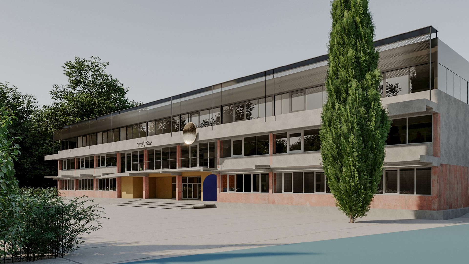 The classrooms are separated from the hall by wall partitions, which, depending on age, allow for a different level of intimacy. Thus, in the first school cycle, barriers to the lobby are actually invisible barriers that separate the classrooms from the public space. In the second cycle, once they have gained some security and independence, their separation from public space is reduced to two glass panels (fixed-wing doors on the side), while in the third cycle, the interior of the classroom is reduced significantly to only one glass door wing and cornice, just like in the second cycle. Each of the clusters, directly or via the staircase is connected to the exit, has a connection to the yard, and represents a large playground that forms multiple zones without formal divisions. So the interior of the building is actually pouring out, so the halls become outdoor classrooms - a square or a park. The children are allowed direct contact with the land, grass and forest.